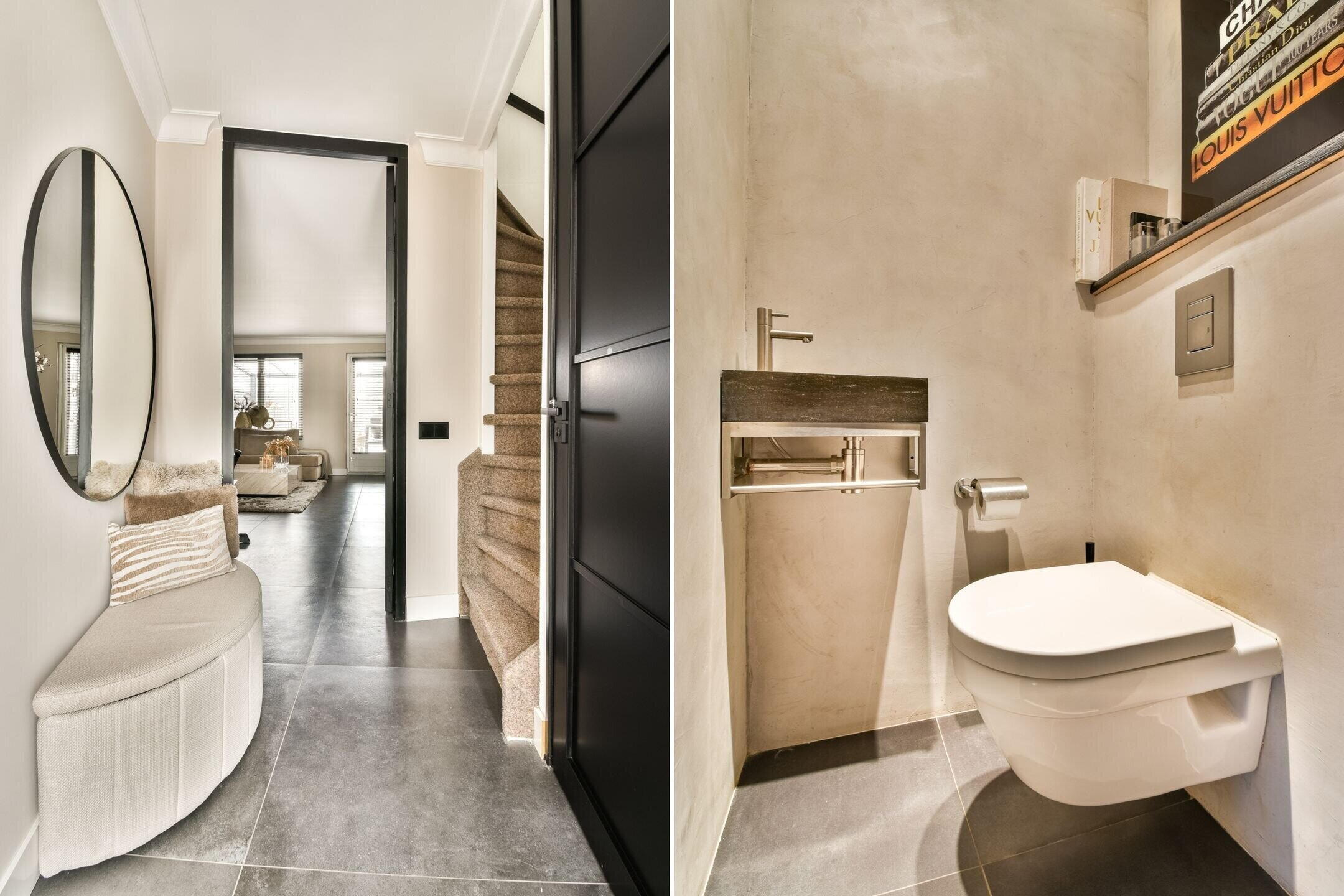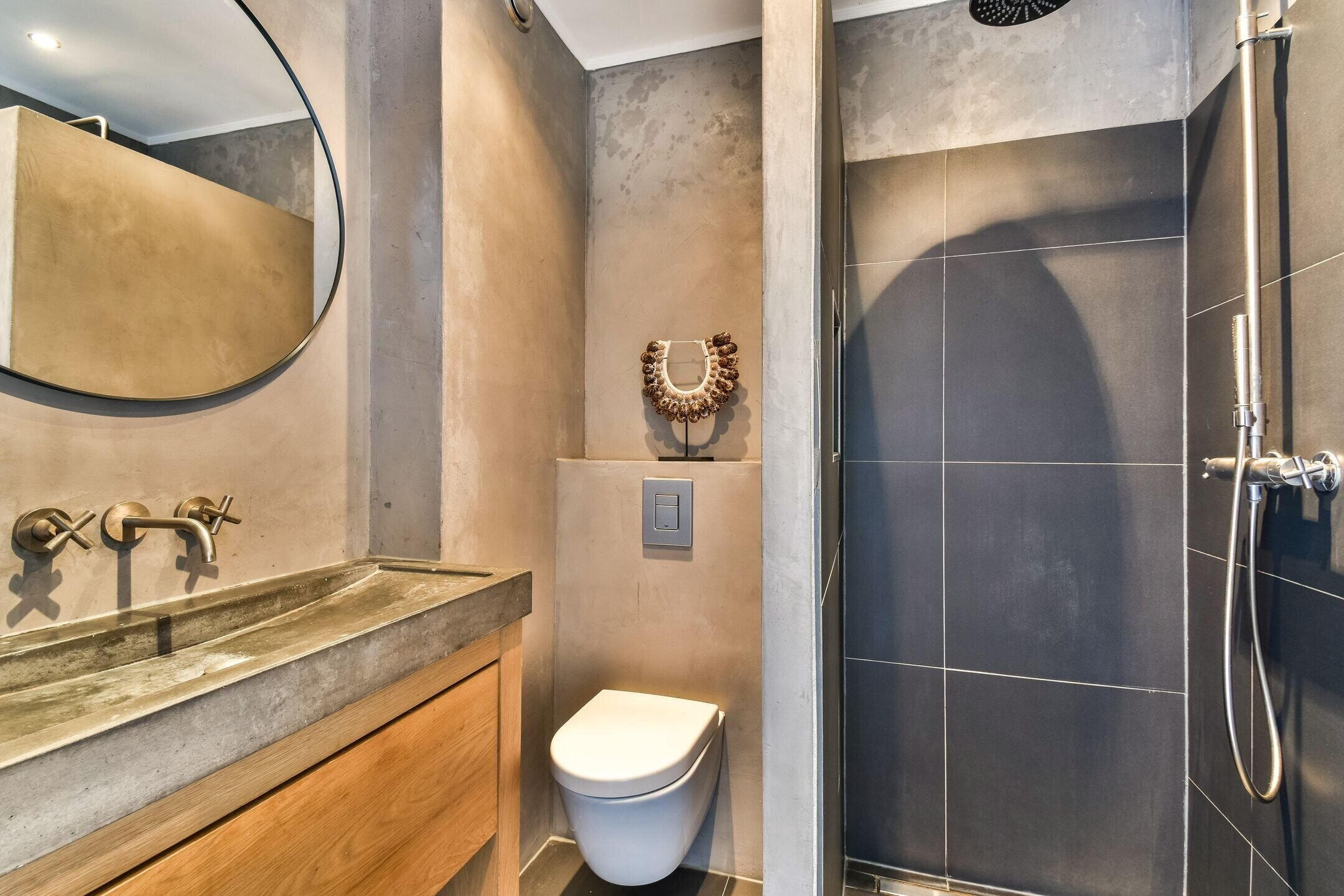 - Inloopdouche, toilet, wastafel, en wastafelmeubel