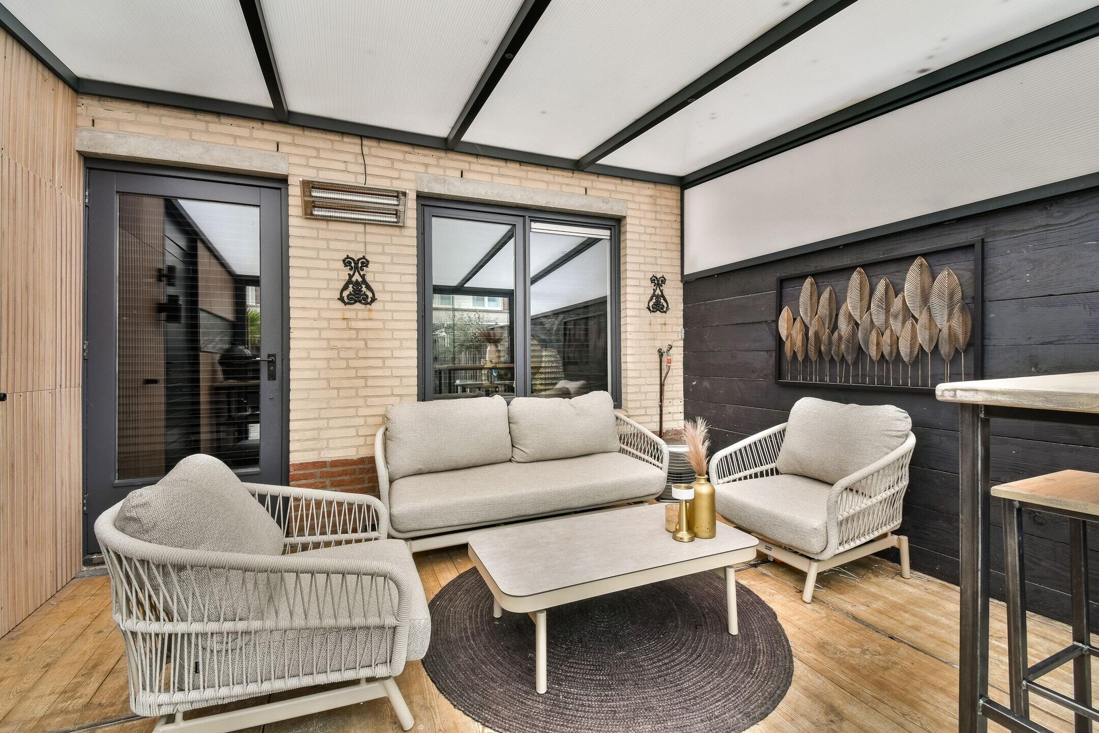 Vanuit de woonkamer is er directe toegang tot de heerlijke serre (ca. 16m²) met toegang tot de stenen berging (ca. 6m²) De aangebouwde serre is een écht verlengstuk van de woning. Voorzien van houten vloerdelen, glazen schuifpui, melkglas dakplaten en buitenkraan. Ideaal om het hele jaar door buiten te genieten. Vanuit de serre toegang tot de onderhoudsvriendelijke achtertuin voorzien van siertegels en achterom.